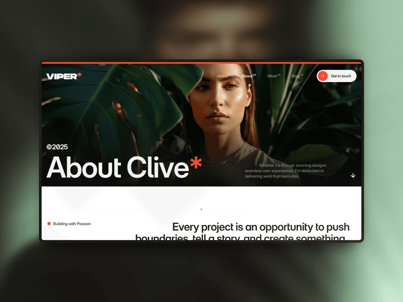 Viper has a confidence to it that you don't always find in free templates. The layout puts your projects first, the animations feel considered rather than decorative, and the CMS handles both case studies and blog posts out of the box. It's bold in a way that works across different kinds of creative work.