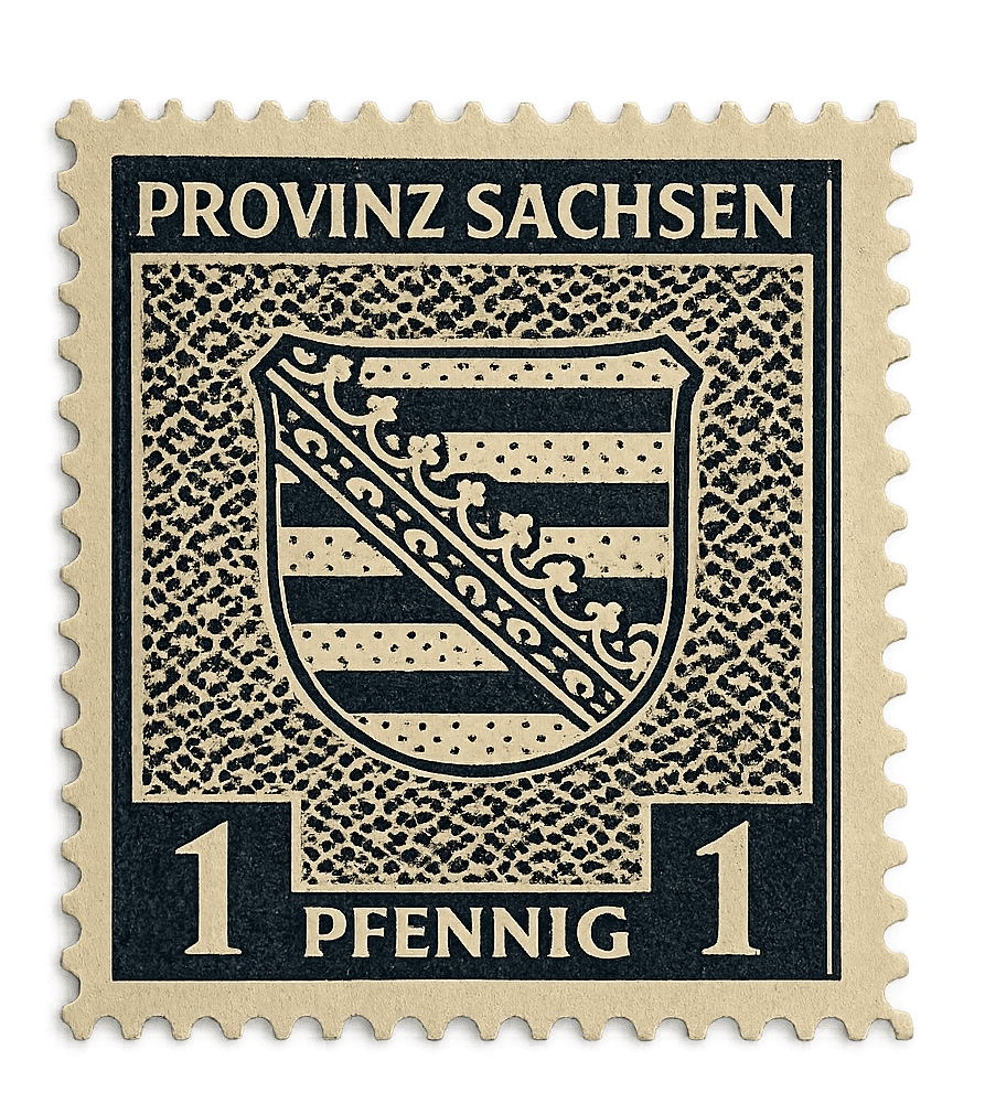 A monochromatic black 1945 stamp issued under Soviet occupation in Germany, featuring the heraldic shield of the Province of Saxony.