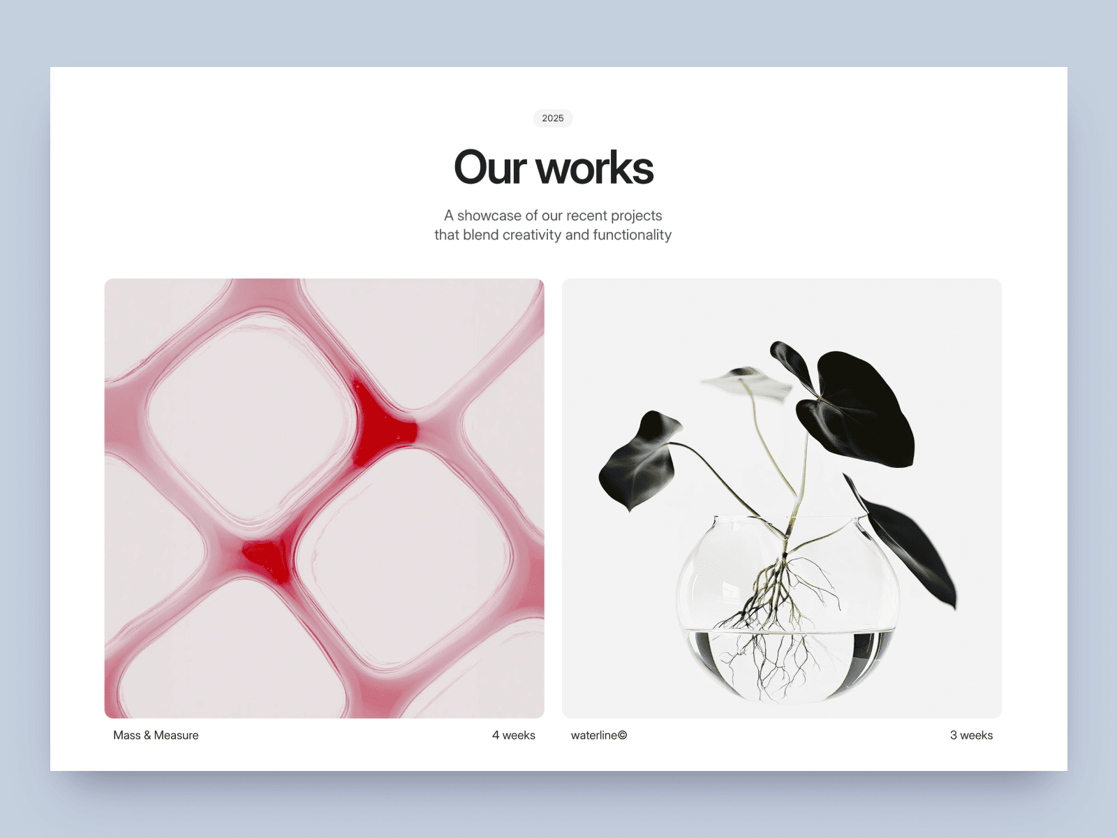 A minimalist project grid from the Orchid Framer template, featuring clean layouts that blend creative imagery with functional design.